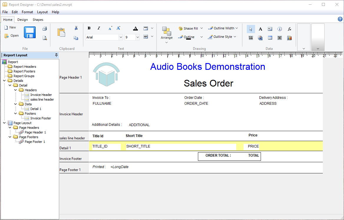 For a more powerful reporting option, the mvPDF Report Designer gives you the option to create fully fledged banded reports with unlimited break levels, summary operations and support for multivalued data from the author of mvQuery.mvPDF banded reports are created to accommodate multivalued data, with multiple repeating bands for associations making it easy to create layouts that can handle order lines and payment plans or similar examples.